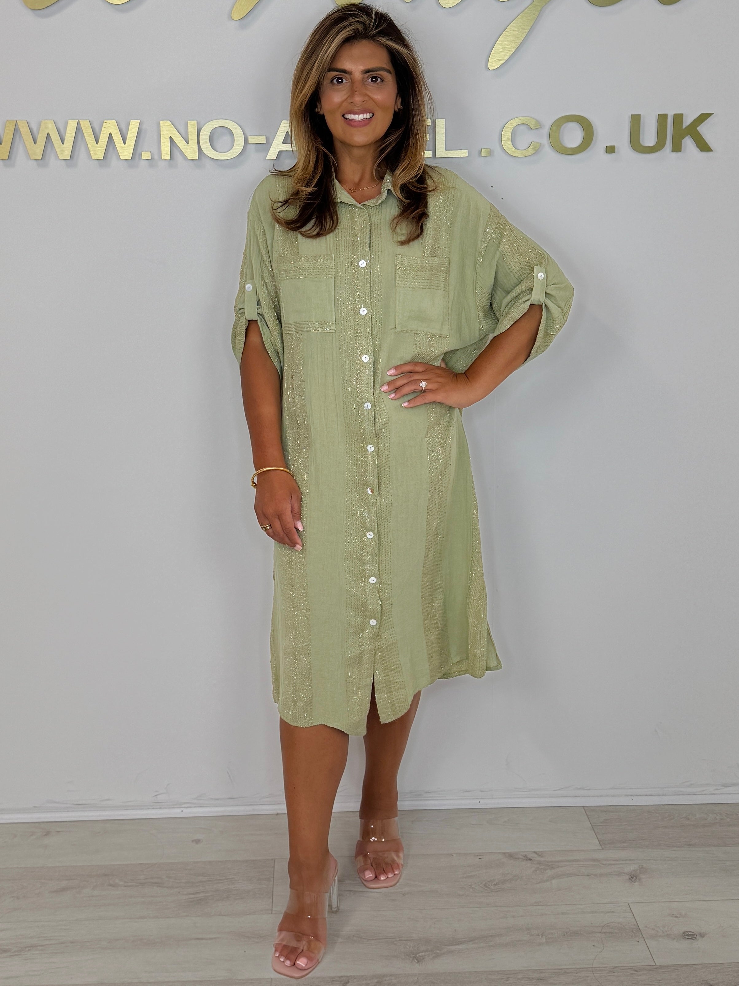 Linen Mix Gold Fleck Midi Shirt Button Up Dress (3 Colours)