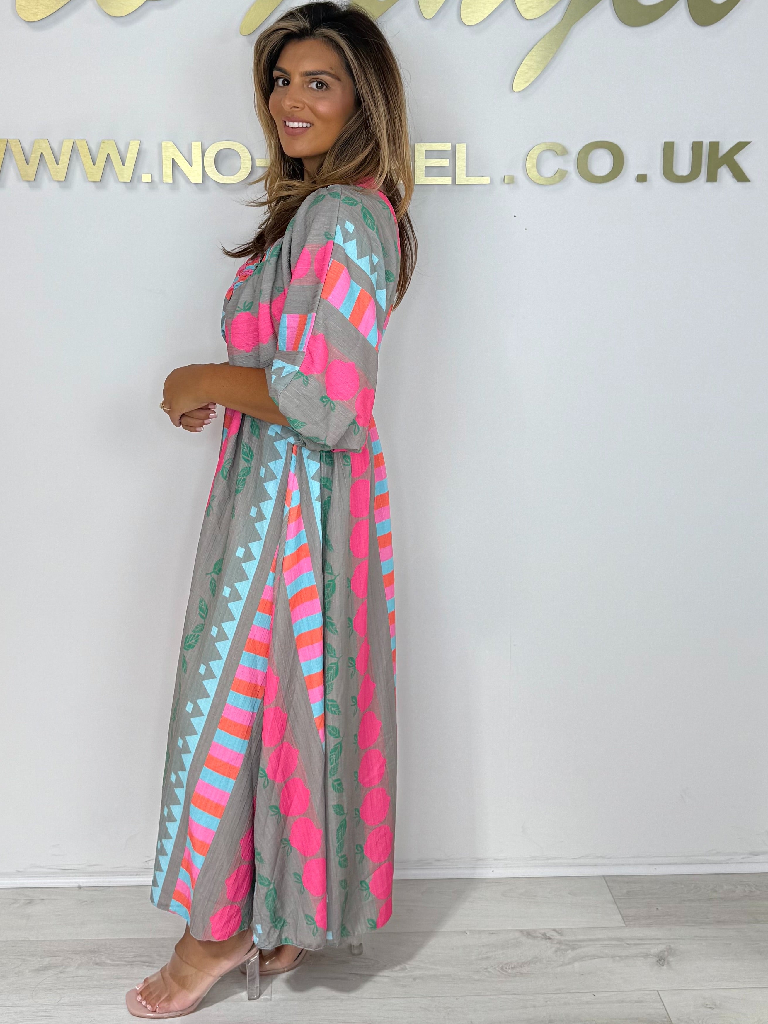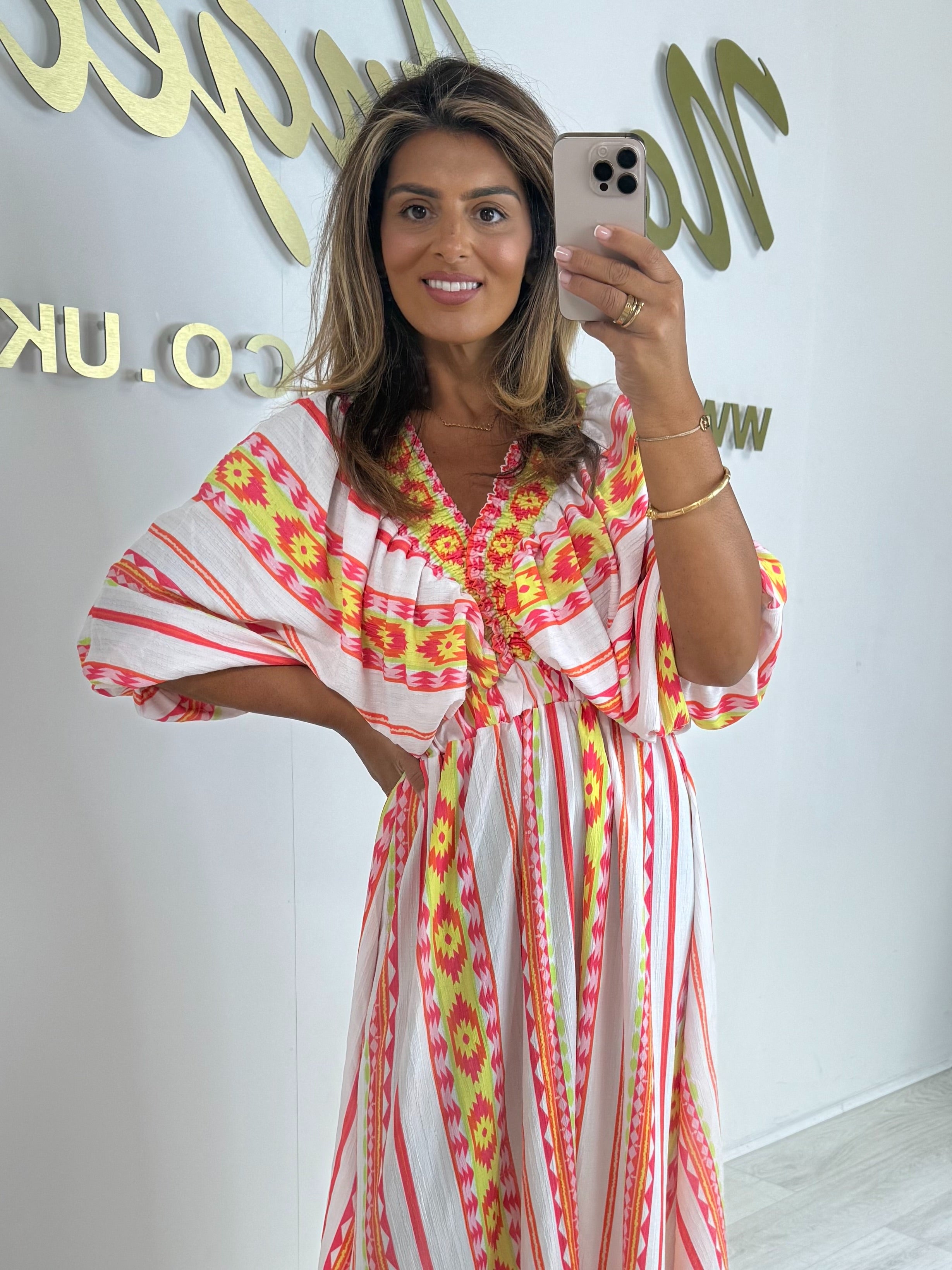 Aztec Print V-Neck Smocked Waist Dress (5 Colours)