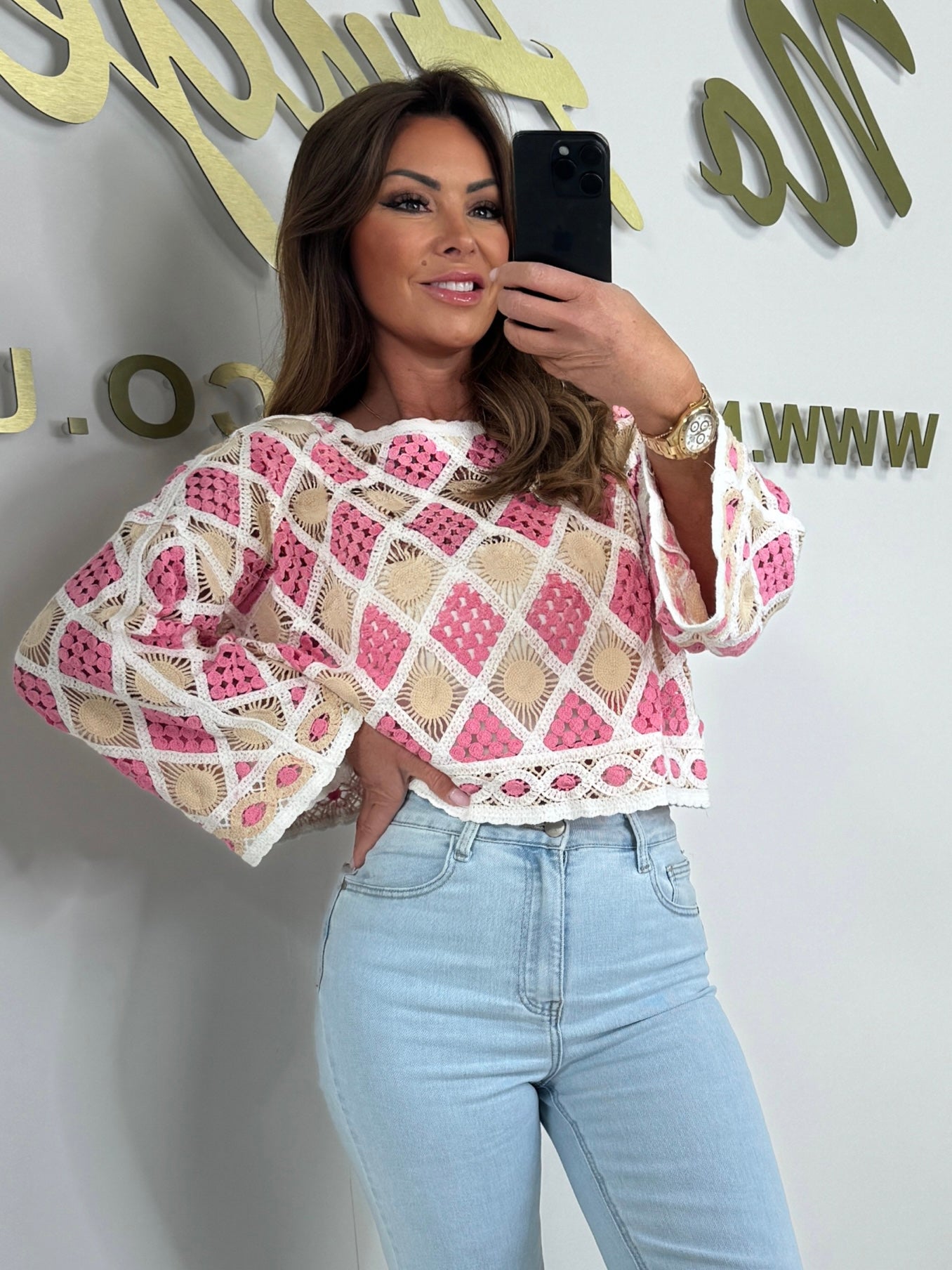 Crochet Diamond Detail Cropped Jumper