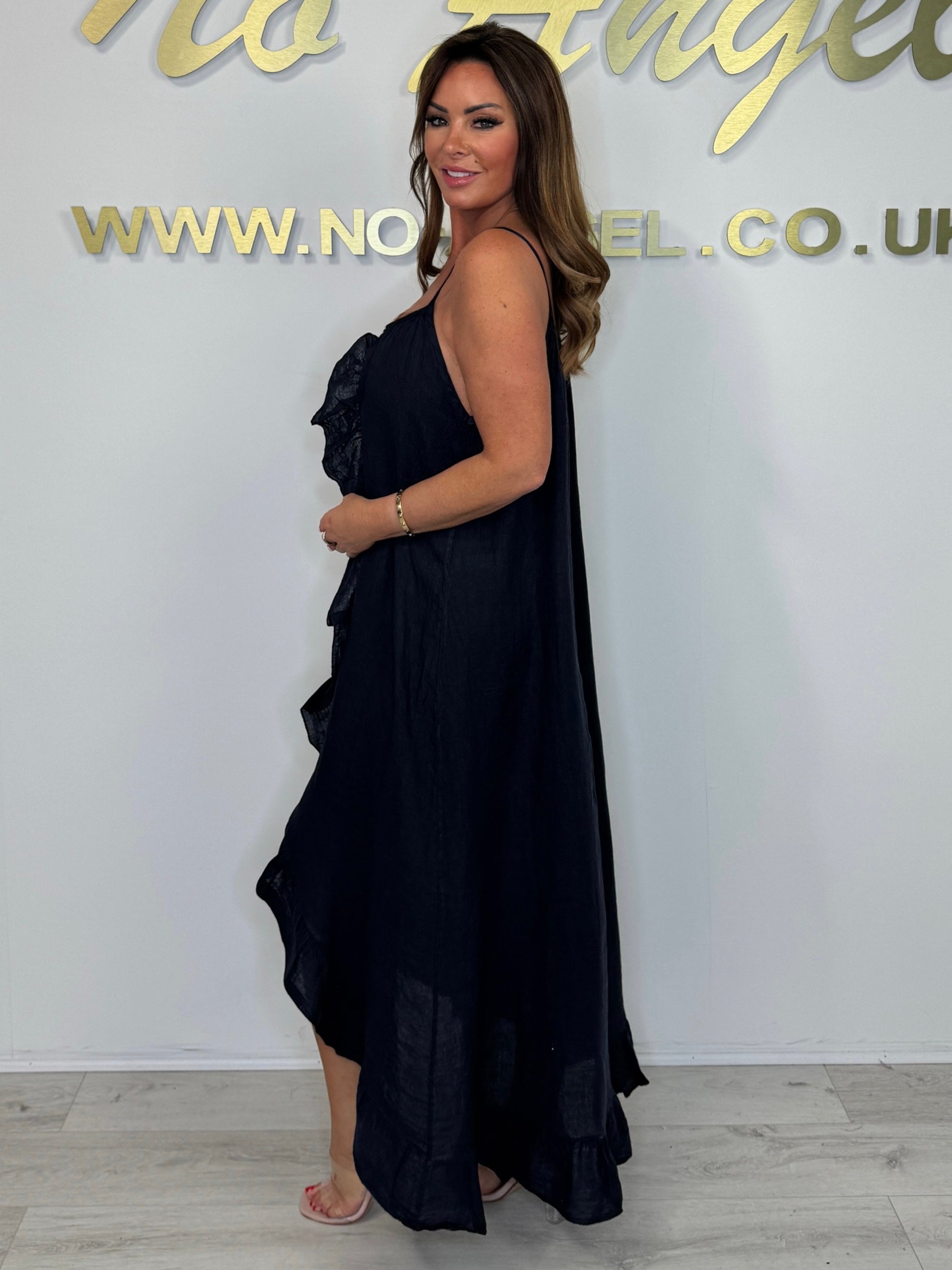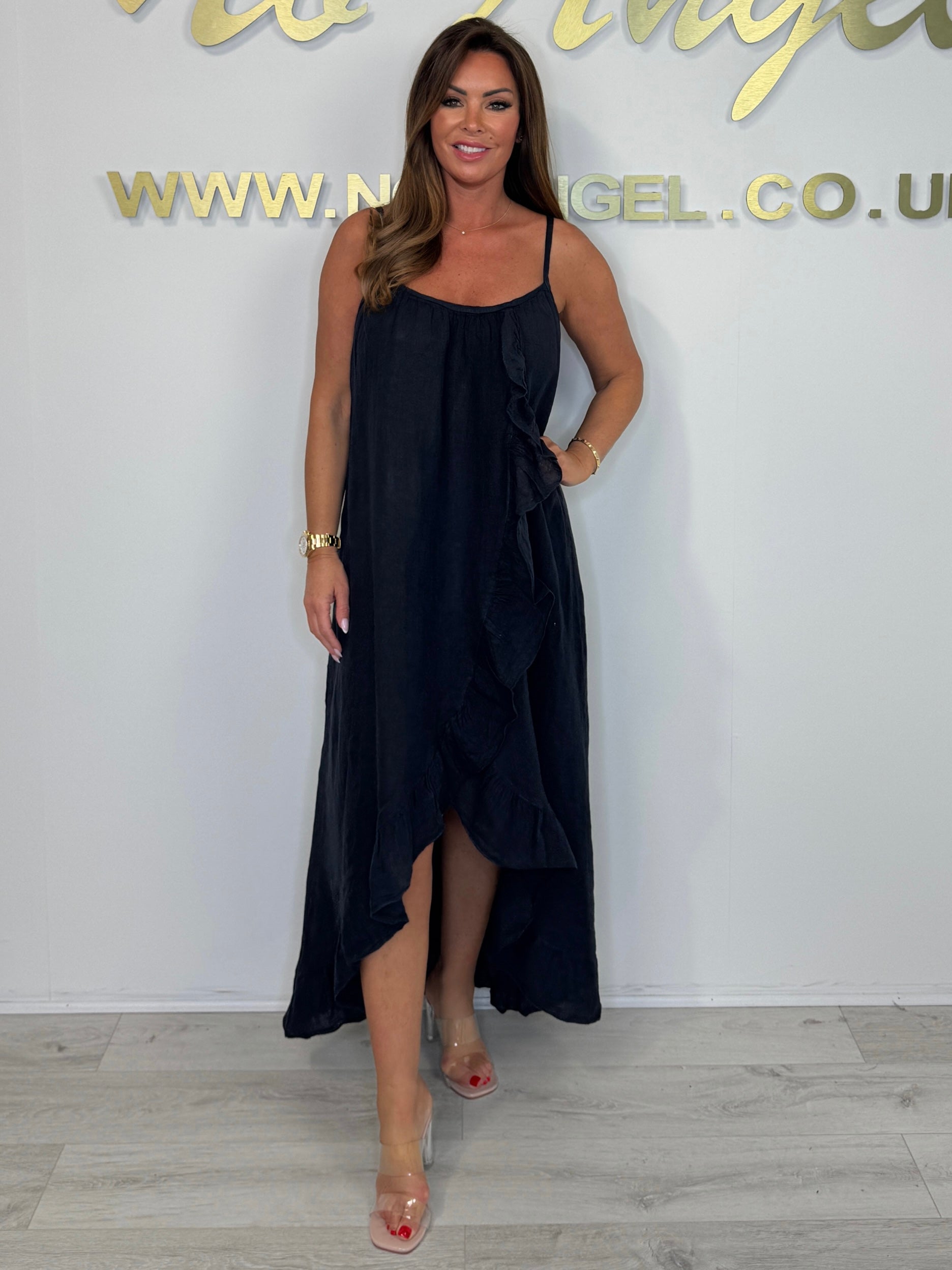 Linen Spaghetti Ruffle Detail Maxi Dress
