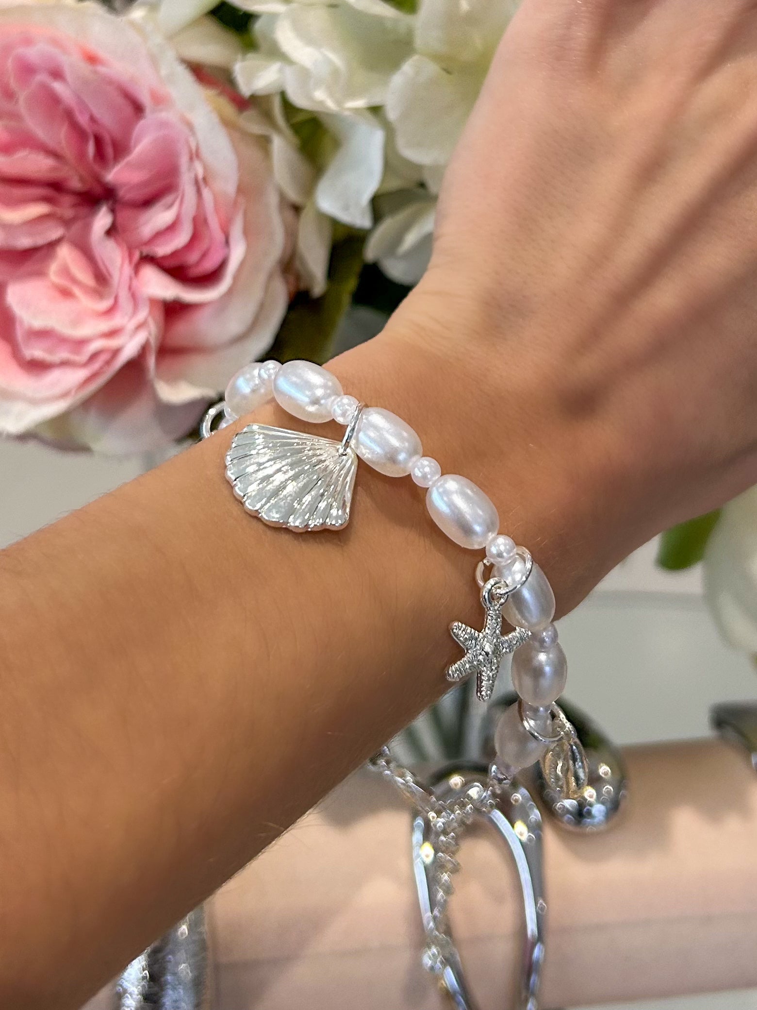 Pearl Seashell Starfish Charm Bracelet