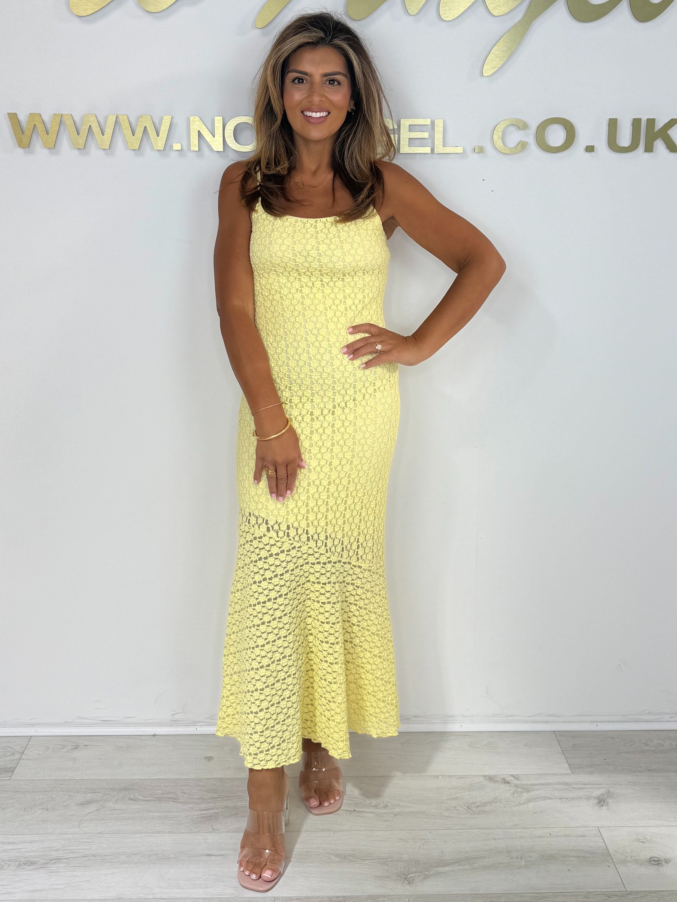 Spaghetti Strap Drop Flower Detail Fishtail Maxi Dress
