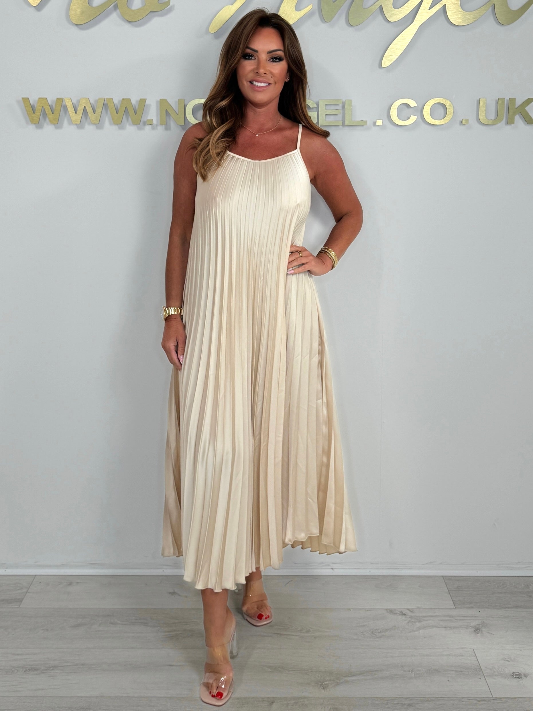 Spaghetti Strap Pleated Maxi Dress