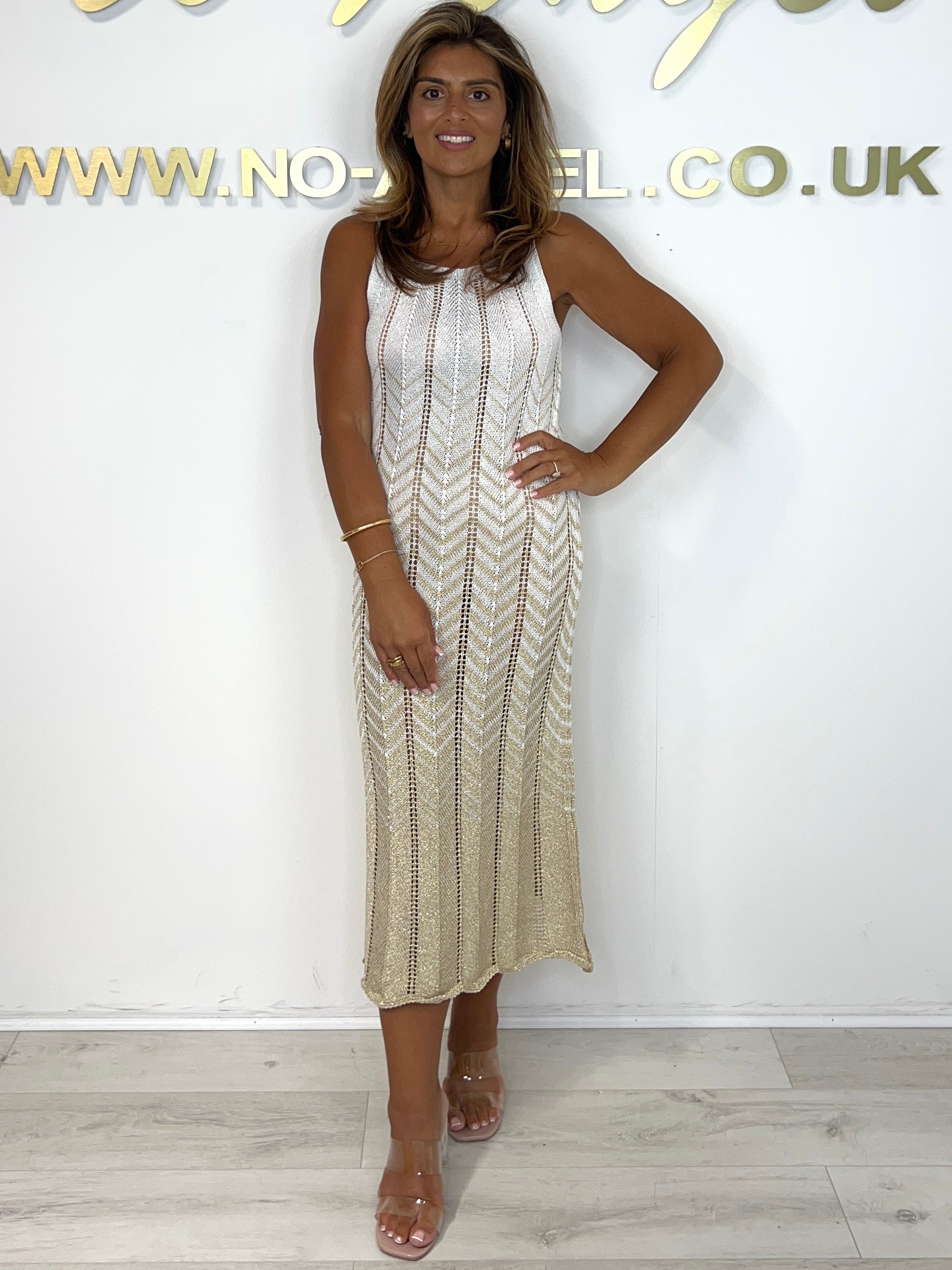 Spaghetti Strap Shimmer Small ZigZag Detail Maxi Dress (4 Colours)