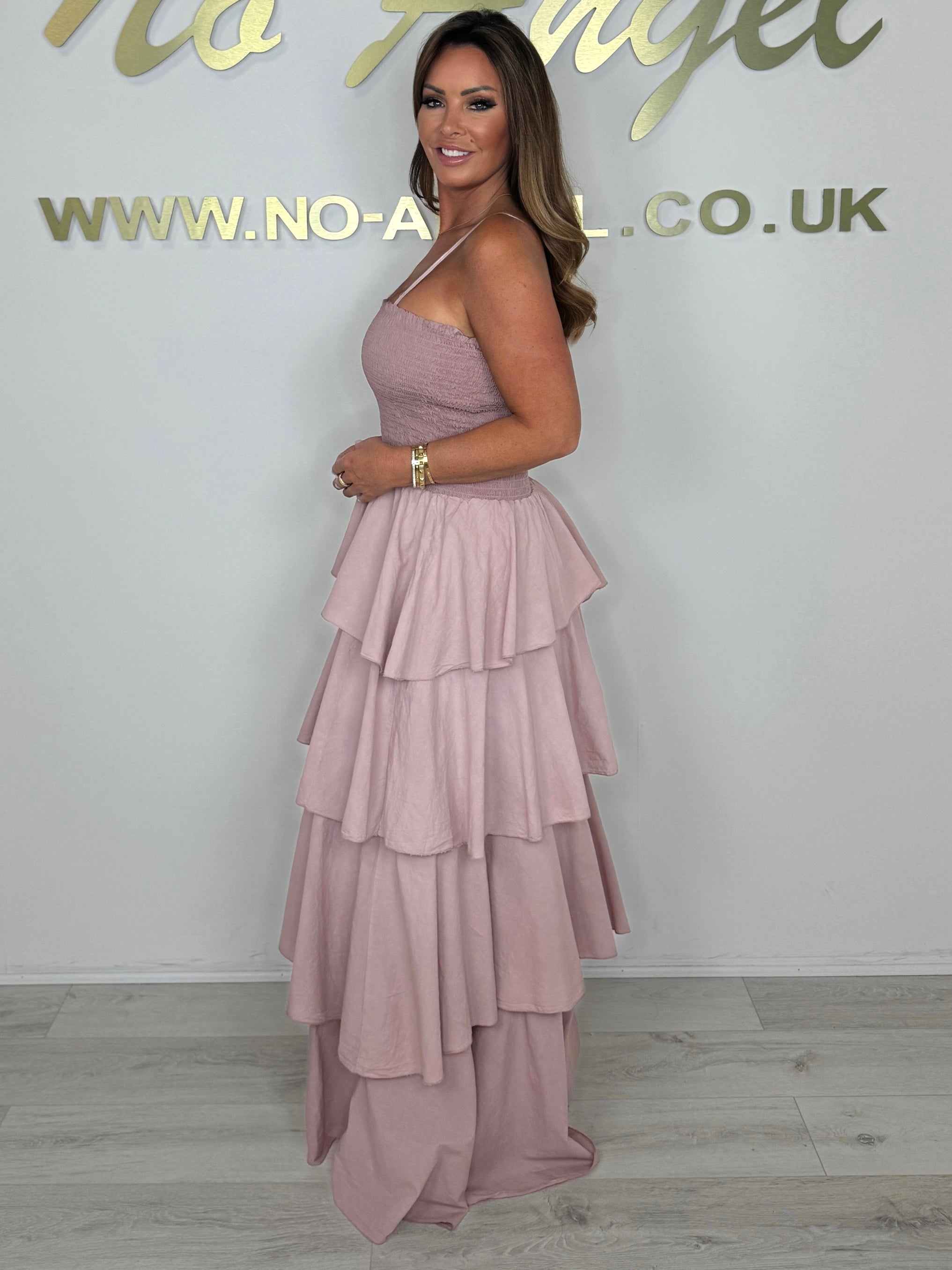 Spaghetti Strap Smocked Layered Bottom Maxi Dress