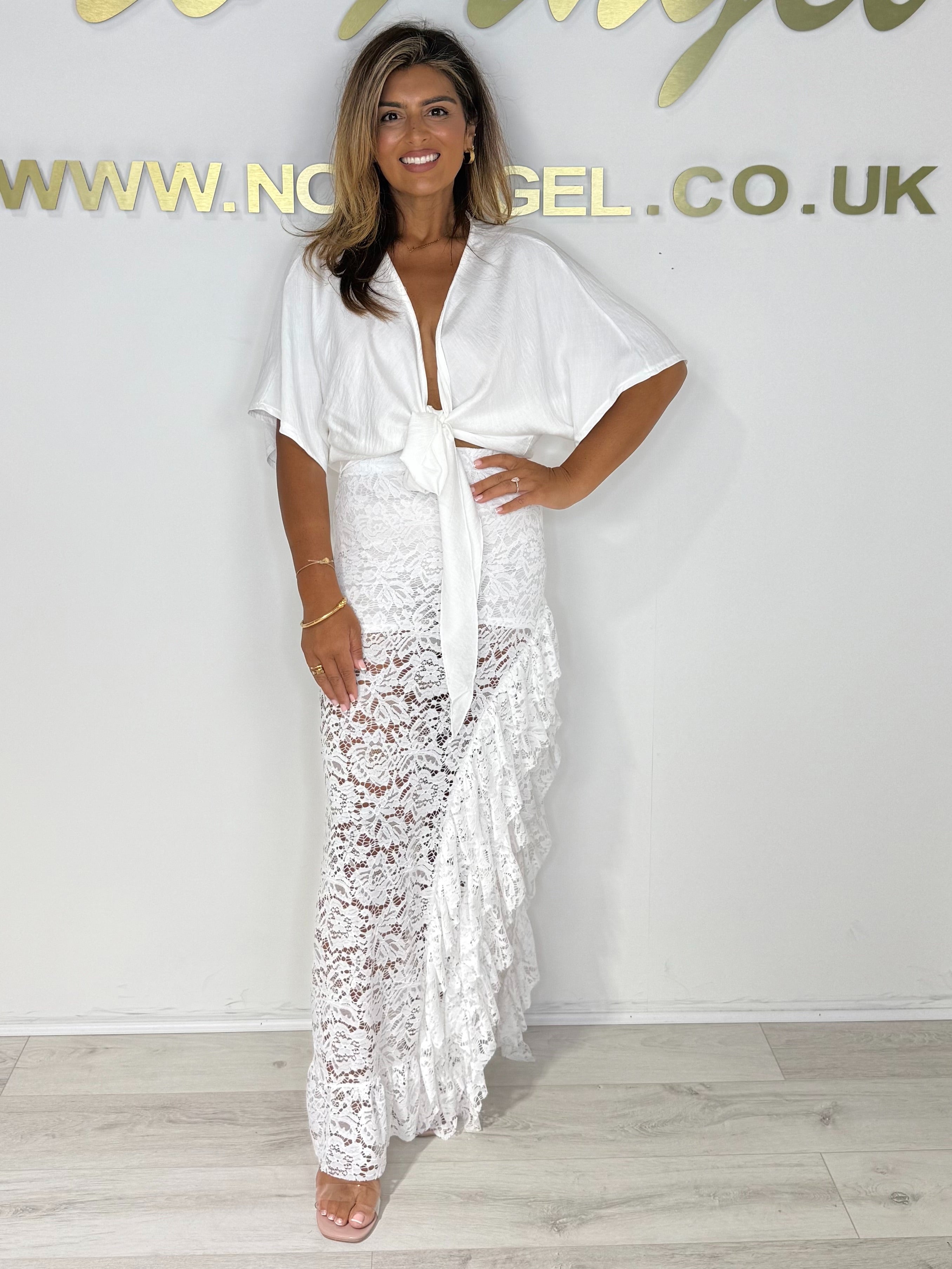 Tie Up Top & Lace Side Split Frill Maxi Skirt Co-ord