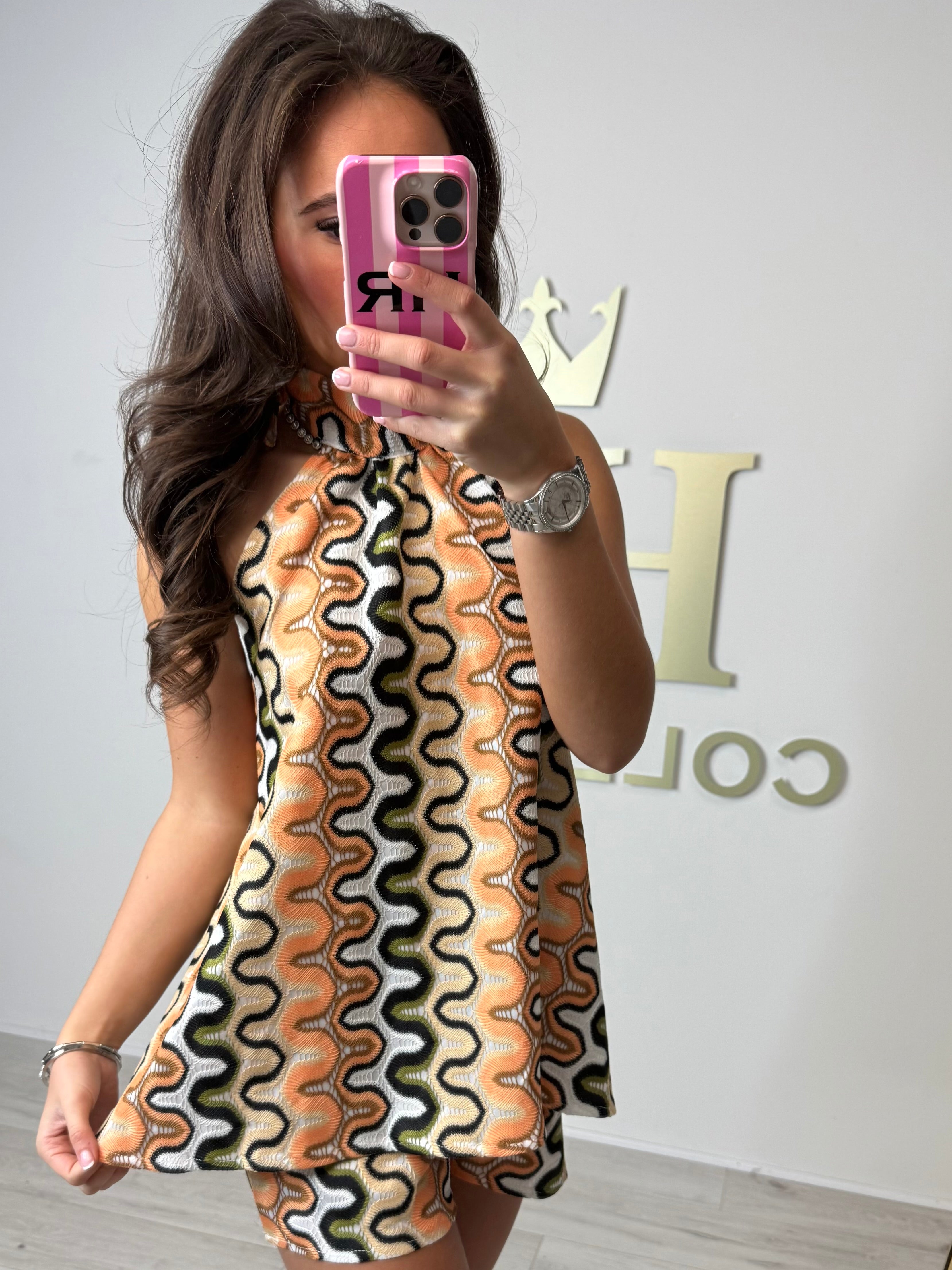 Wavey Halter Neck Floaty Top & Shorts Co-ord