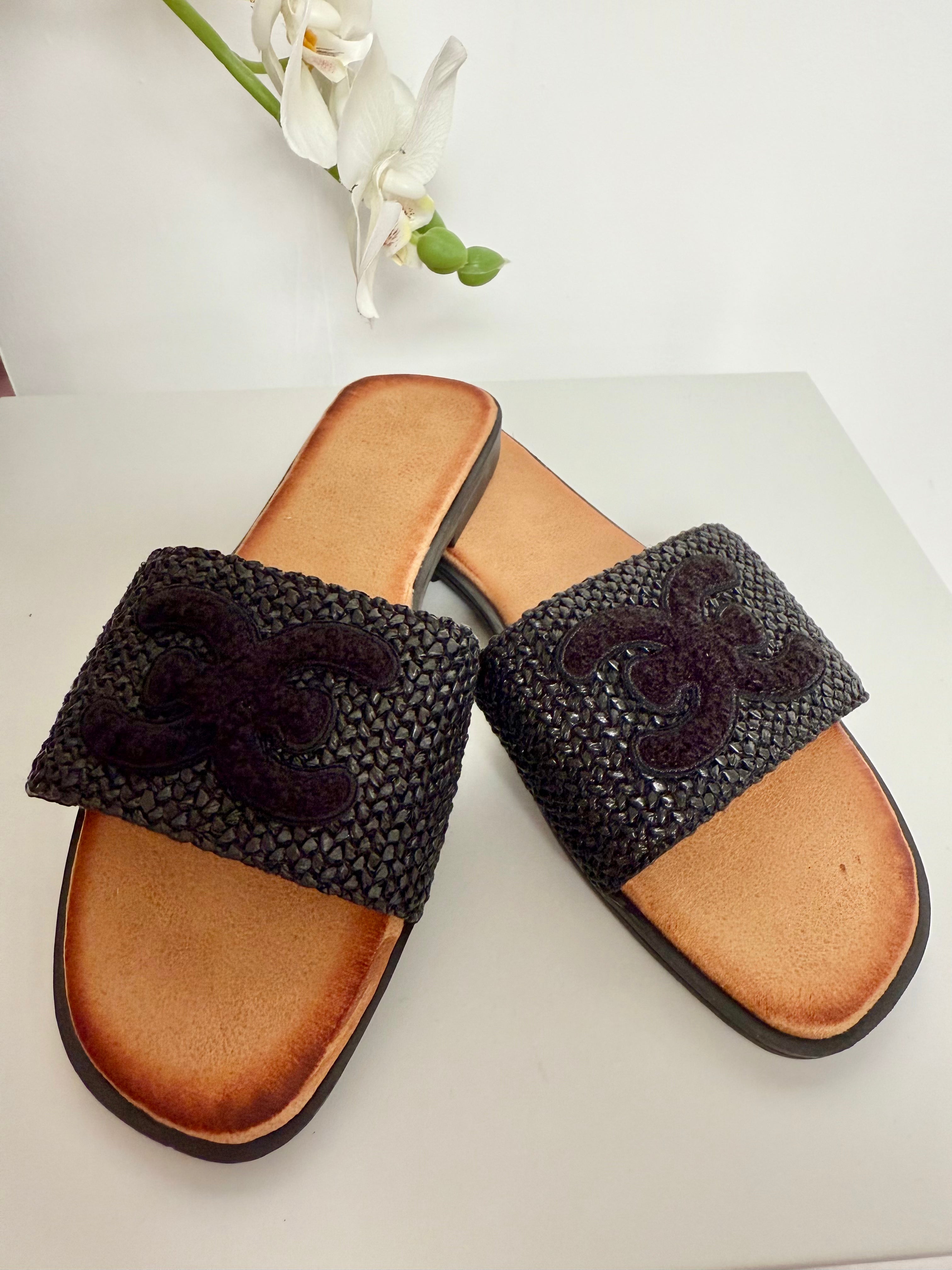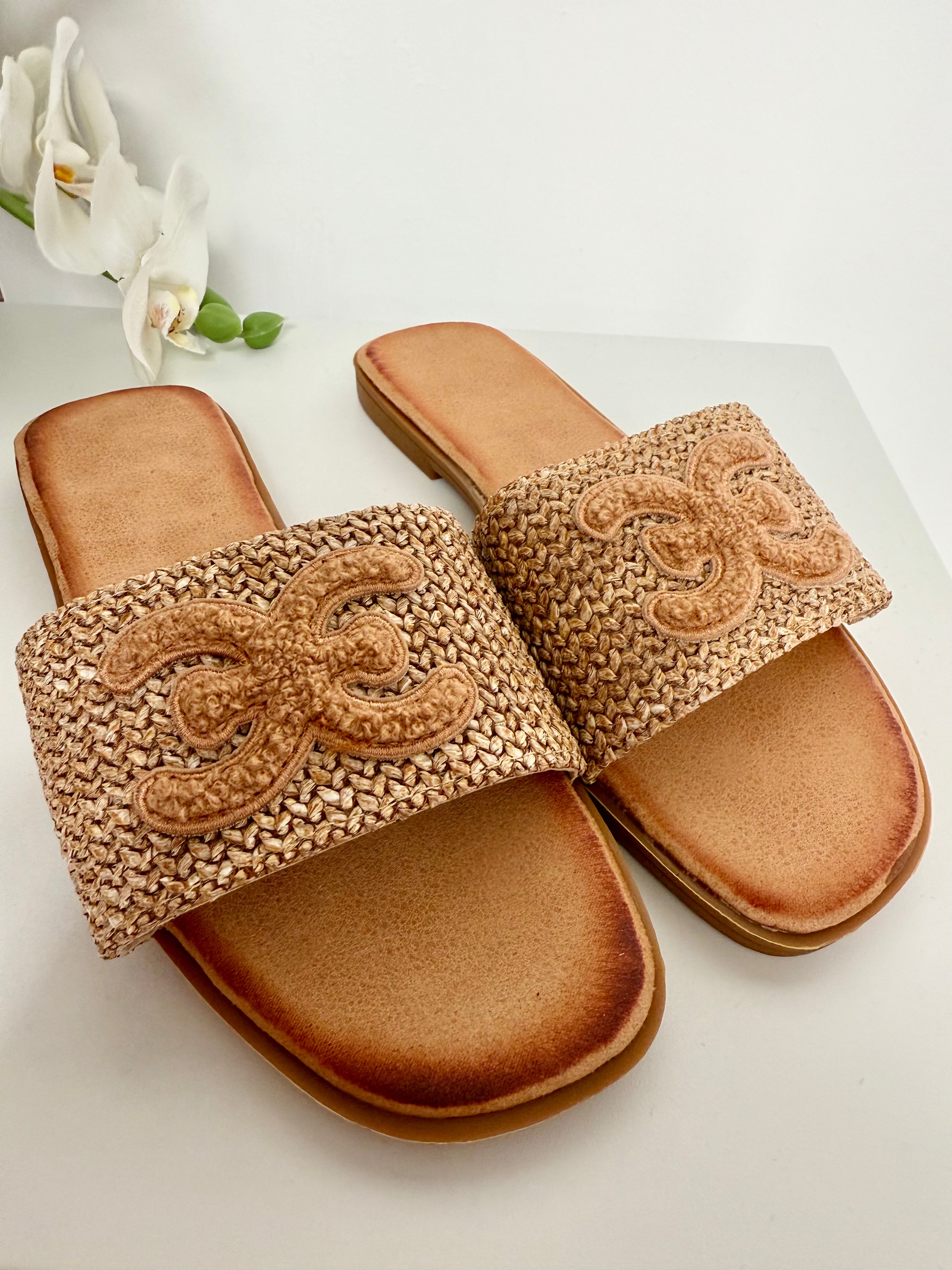 Woven Fabric Detail Slider Sandals
